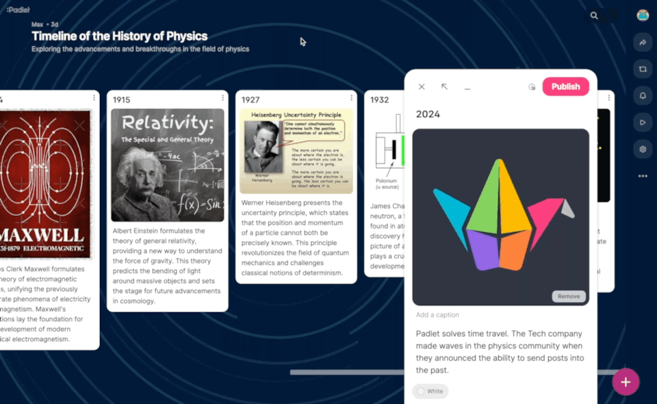 O Padlet é uma plataforma versátil que permite criar murais digitais. Professores e alunos podem adicionar textos, imagens, links, vídeos, e documentos, facilitando a colaboração e o compartilhamento de recursos.